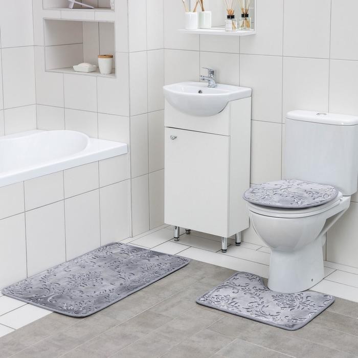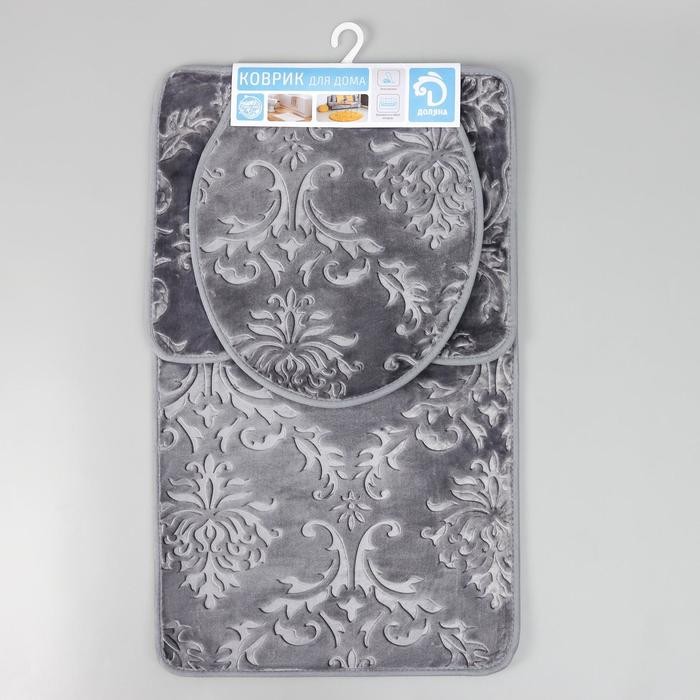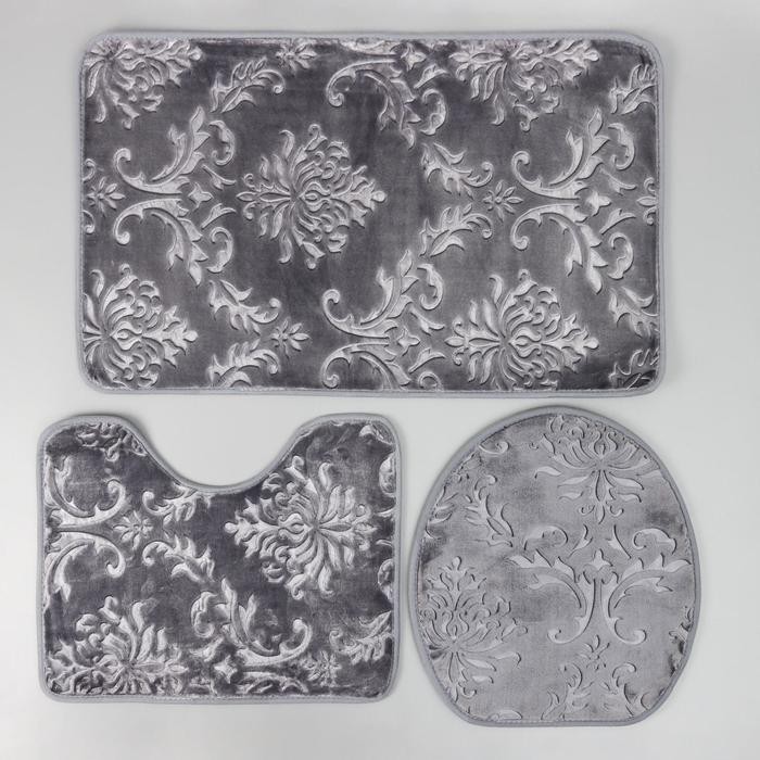 Набор ковриков для ванны и туалета Доляна «Грация», 3 шт: 50×80, 50×40, 45×40 см, цвет серый