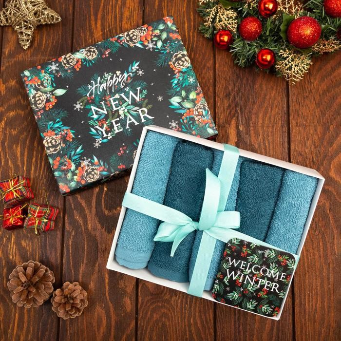 Набор махровых полотенец Этель Happy new year 30×30 см -5шт, 100% хл, 340гр/м2