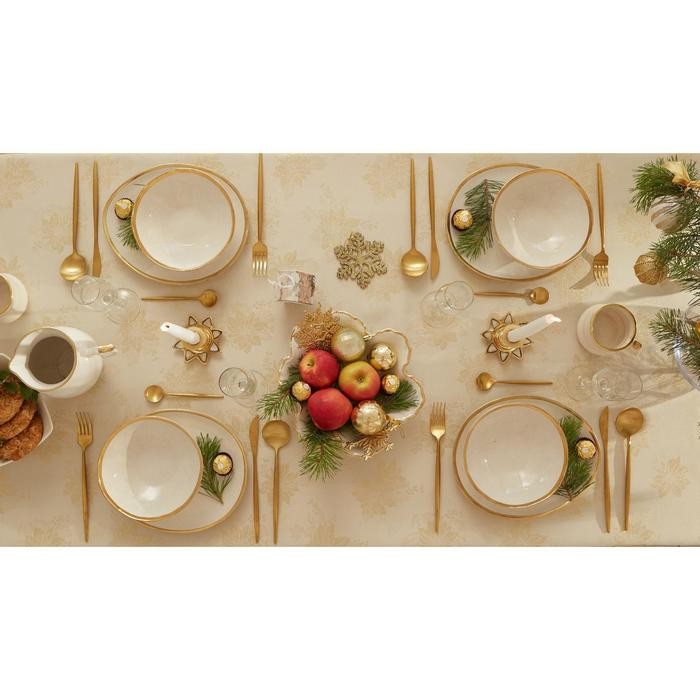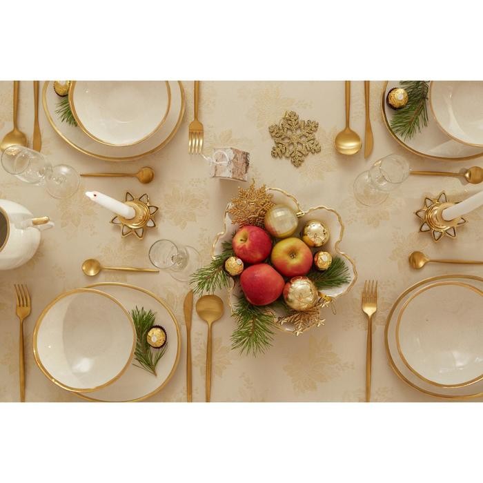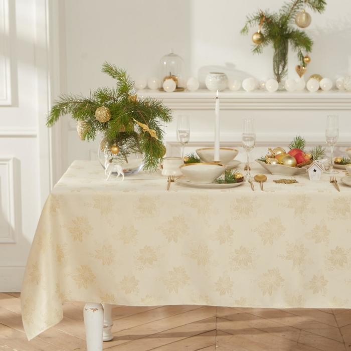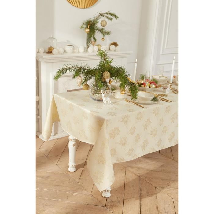 Скатерть Этель «Пуансеттия» цв.золото, 142*110 +/-3 см, 115 ±10 гр,100% п/э