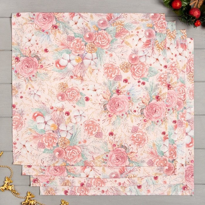 Набор новогодних салфеток Этель «Pink magic» 46×46 см — 4шт., 100%хл, саржа 190 г/м2