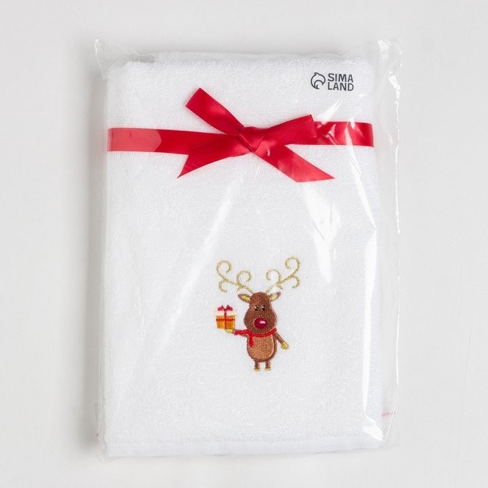 Полотенце подарочное Этель «Олень с подарком» 50*90 см, 100% хл, 340 гр/м2