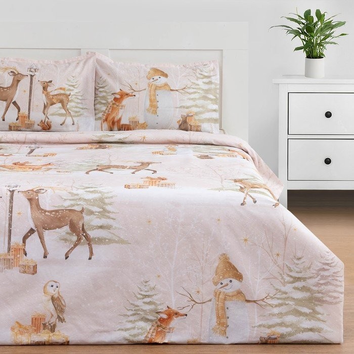 Комплект: пододеяльник и 2 наволочки Christmas forest 143*215 см отлично подойдёт для спальни в стиле: винтажный.