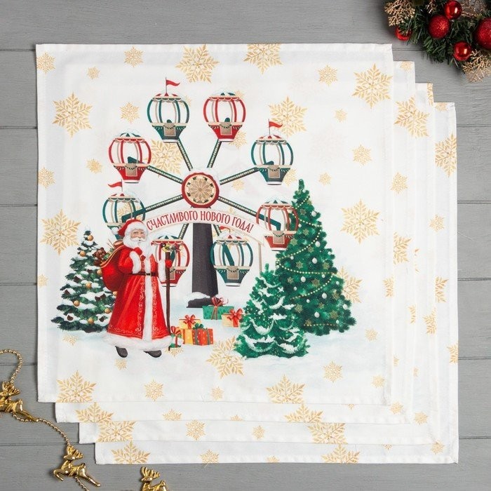 Набор салфеток «Этель» Новогодняя ярмарка 40х40см 4 шт, 100% хл, саржа 190 гр/м2