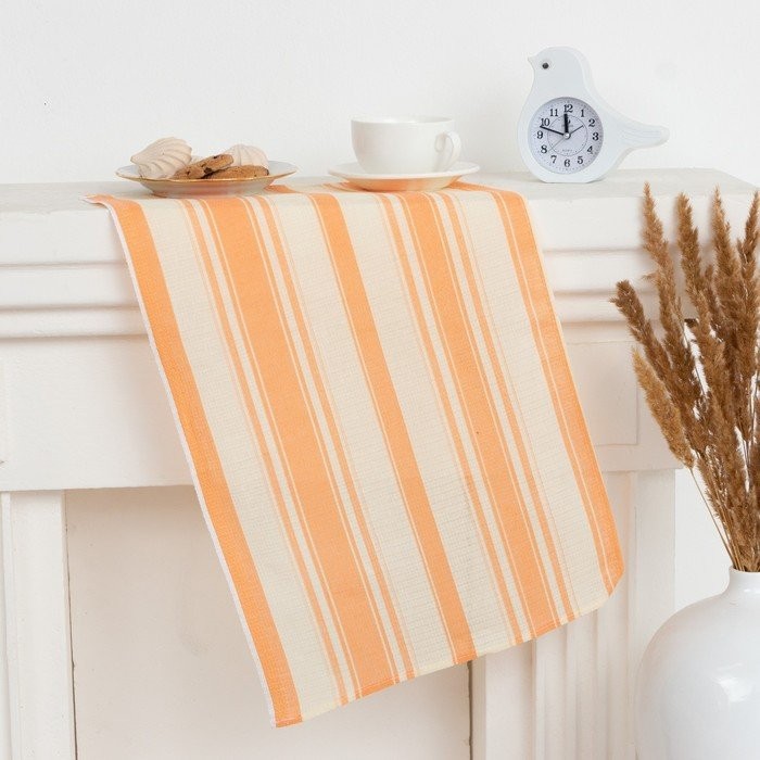 Полотенце 35×60 см, Полоса, персиковый, вафля, 120 гр/м2, хлопок 100%, фасовка 10 штук