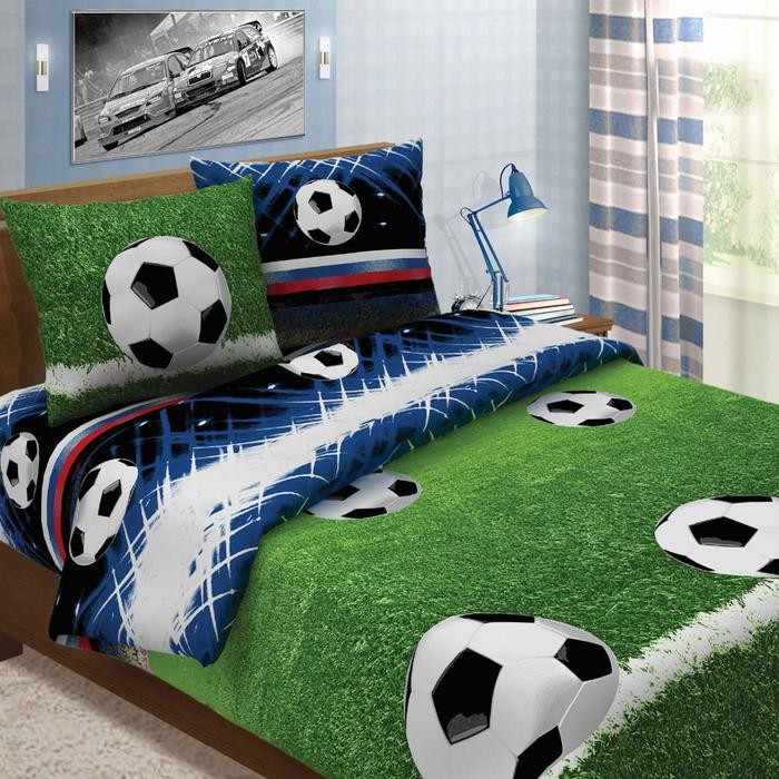 Постельное бельё «Традиция: Футбол», 1.5 сп., 147×217 см., 150×220 см., 70×70 см. — 2 шт., бязь 125 г/м хл.100%