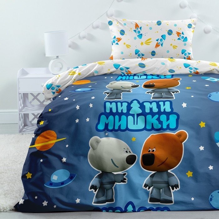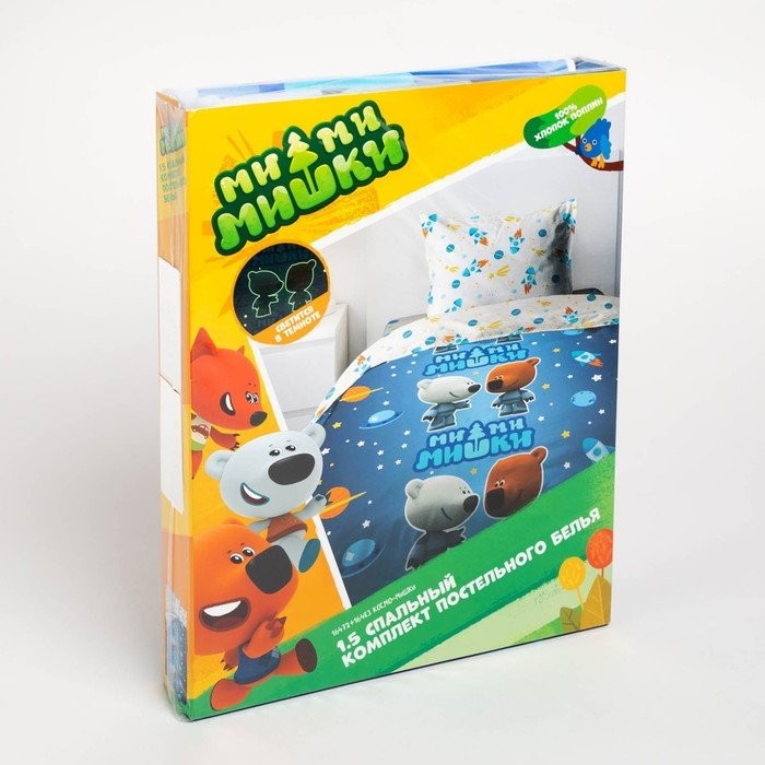 Постельное бельё 1.5сп Ми-ми-мишки Neon «Космо-мишки» 143×215, 150×214, 70×70−1шт, поплин 105г/м хл100%