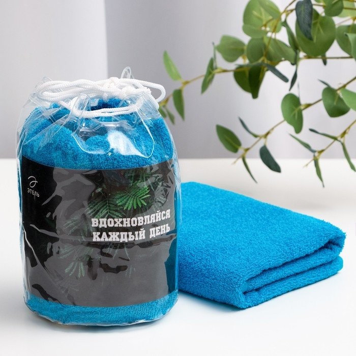 Полотенце подарочное Этель «Вдохновляйся» цв.голубой, 50х90см, 100% хл, 340 г/м2