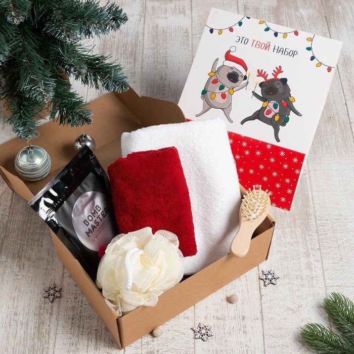 Набор подарочный Этель «Твой набор» полотенце 50х90см,30х60см и аксс (5 предм)