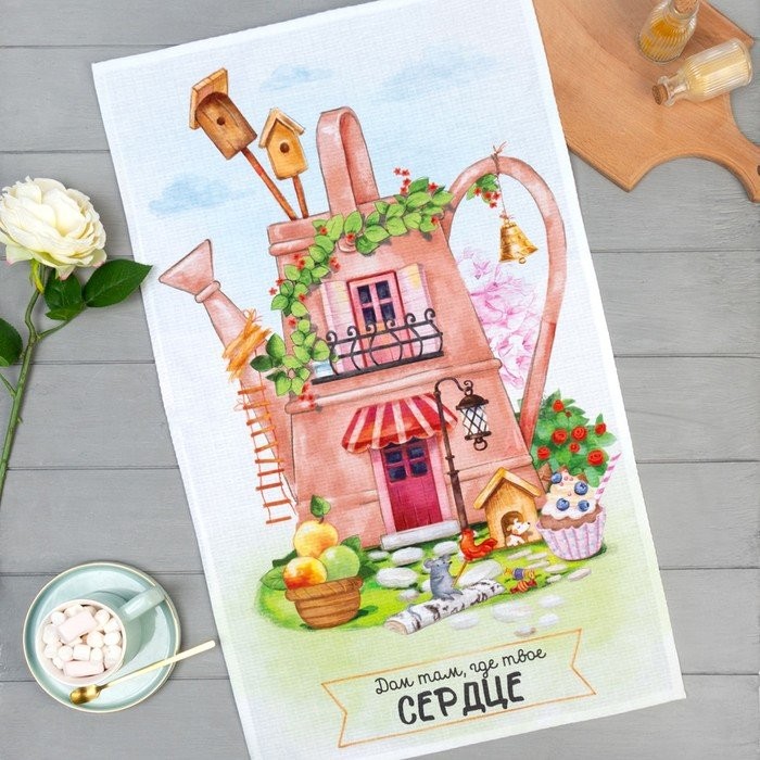 Полотенце «Этель» Дом там где сердце 40×73 см, 100% хл, вафля