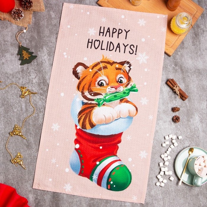 Новогоднее полотенце «Этель» Surprise 40×73 см, 100% хл, вафля 160 г/м2