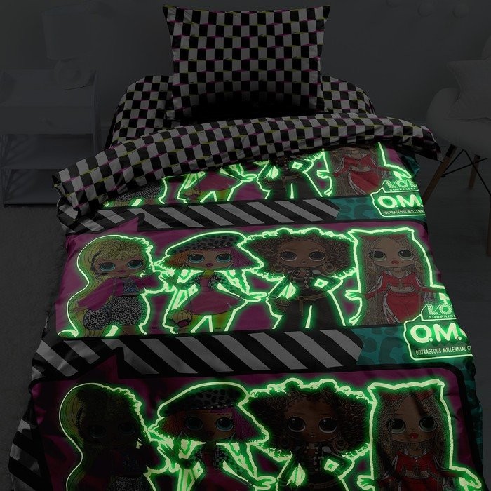 Постельное бельё 1.5сп LOL OMG Neon «Подиум» 143×215, 150×214, 70×70−1шт, поплин 105г/м хл100%