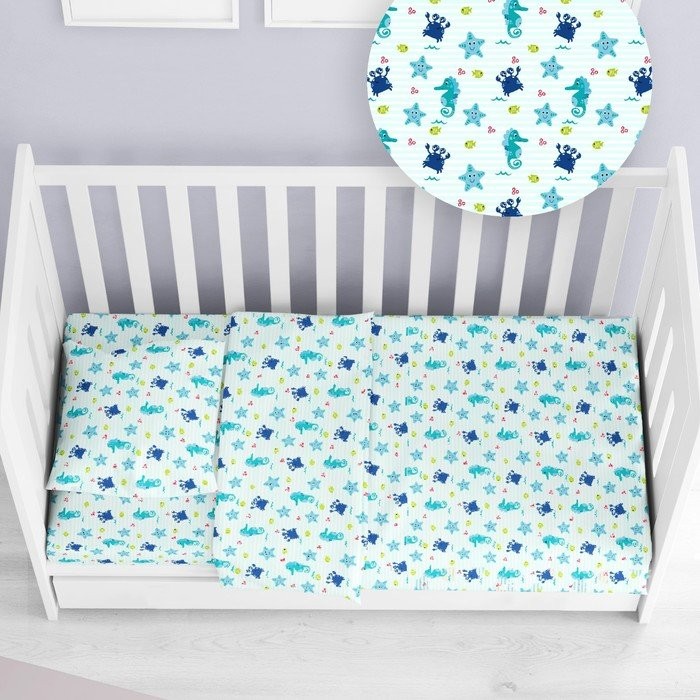Постельное бельё детский Русский дом «Морской конек синий» 112×147, 100×150, 40х60см, бязь 120 г/м хлопок 100%