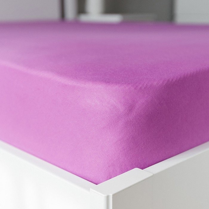 Трикотажная простынь на резинке 140х200х25см, фиолетовый кулирка, 120г/м хл100%