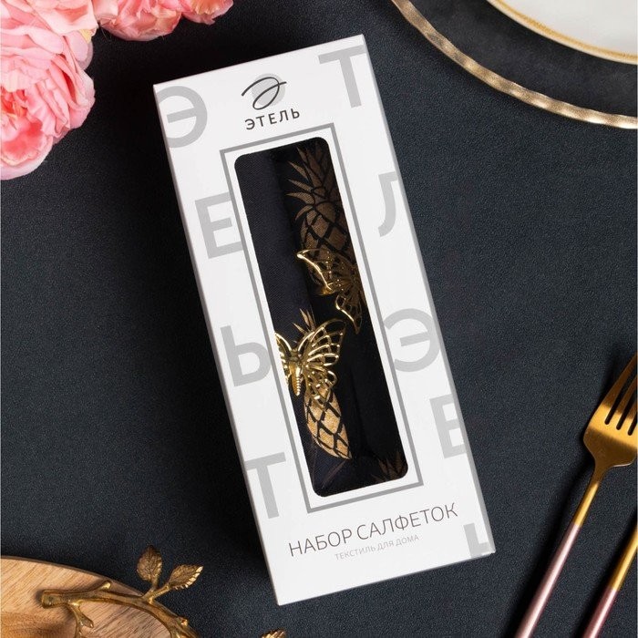 Набор салфеток с декорат. кольцами «Golden pineapple» 46×46 см — 2 шт,100% хл, саржа 190гр/