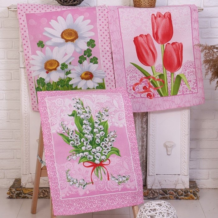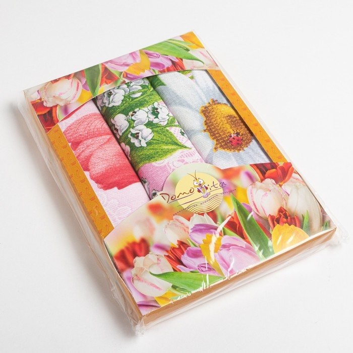 Набор полотенец в коробке Букетики 45×60 см, 3 шт, розовый, вафля, 170 гр/м2, хлопок 100%
