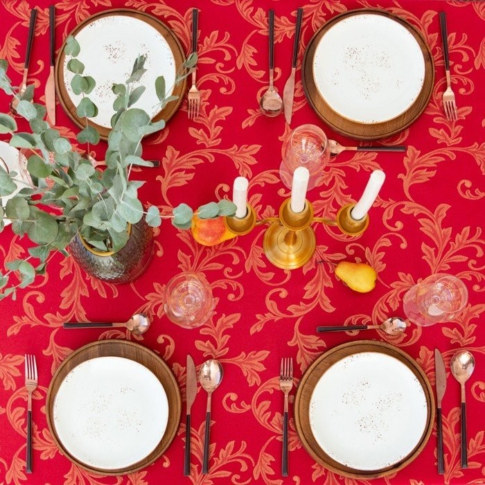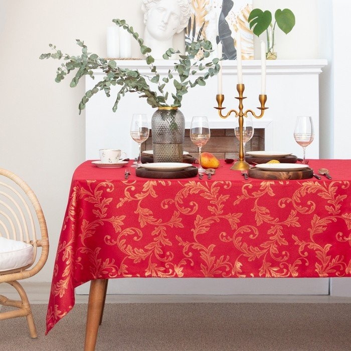 Скатерть Этель «Patterns» цвет красный, 142*220 +/-3 см, 115 ±10 гр,100% п/э