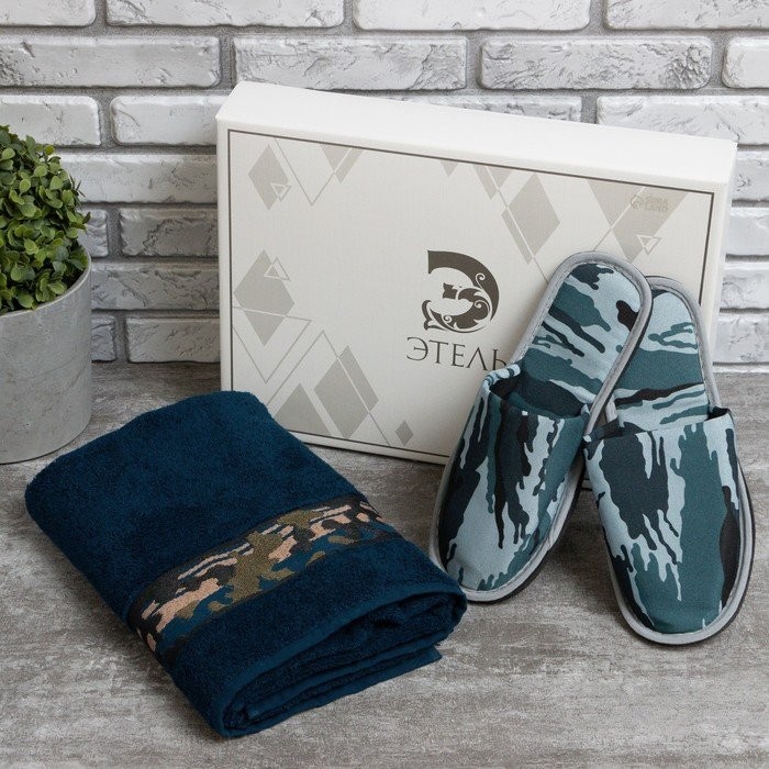 Набор подарочный Этель «Милитари DarkBlue» полотенце 70*130 см+тапки муж 42 р-р