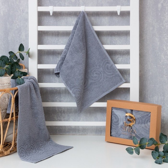 Набор полотенец Этель «Present» 30*60см — 2шт, цв.серый, 100% хлопок, 360 г/м2