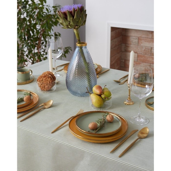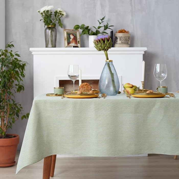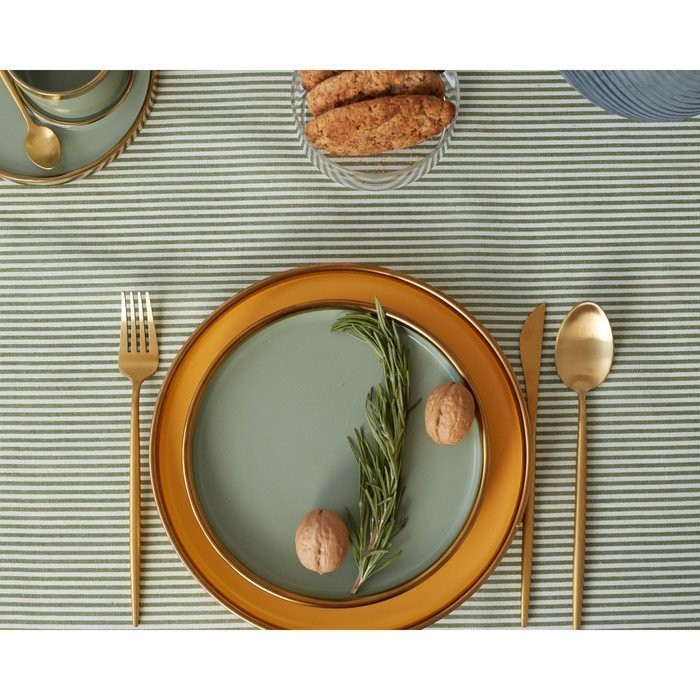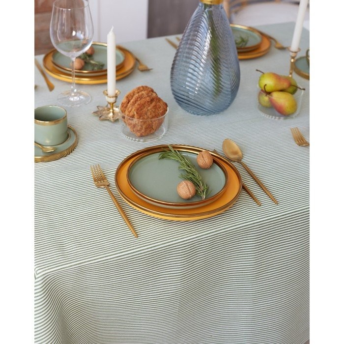 Скатерть Доляна 145х145см, Зеленая полоска, 100%пэ, рогожка 200 гр/м