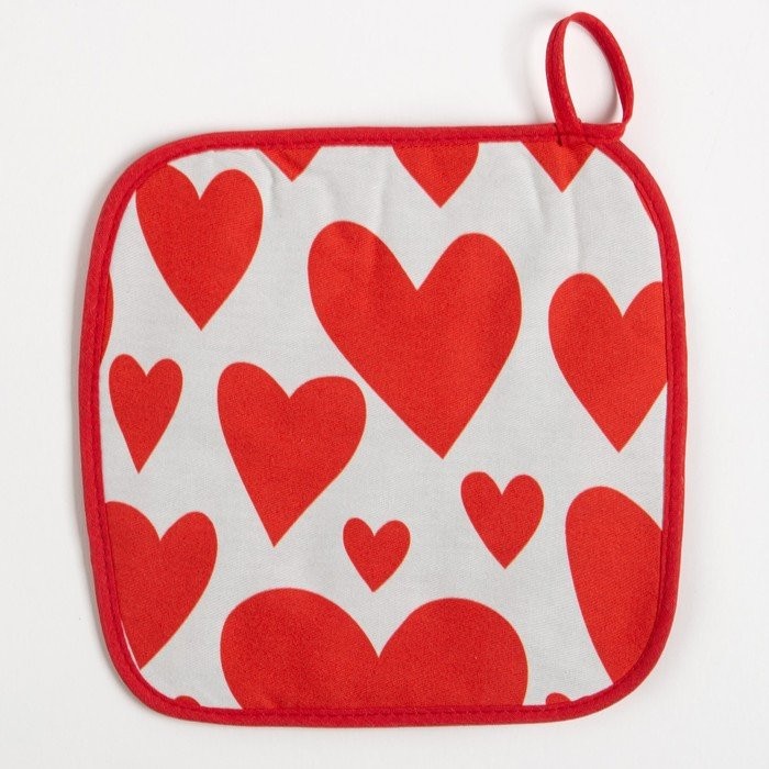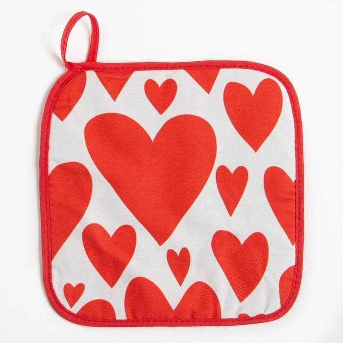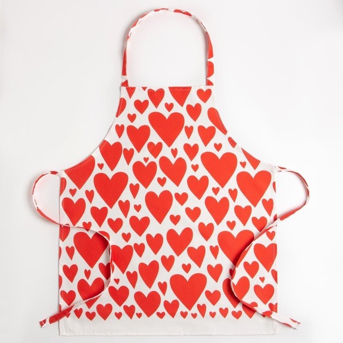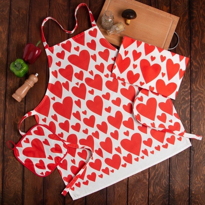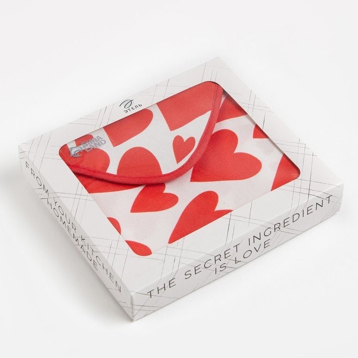 Кухонный набор Этель Red hearts, полотенце 40×73 см, прихватка 19×19 см, фартук 60×65 см