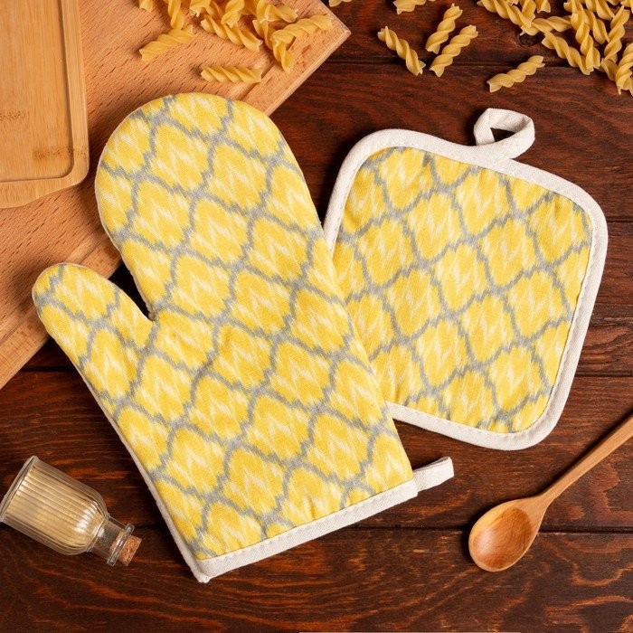 Кухонный набор (2 предмета) Доляна «Узоры», прихватка 17×17 см, варежка 26×16 см, 100% п/э