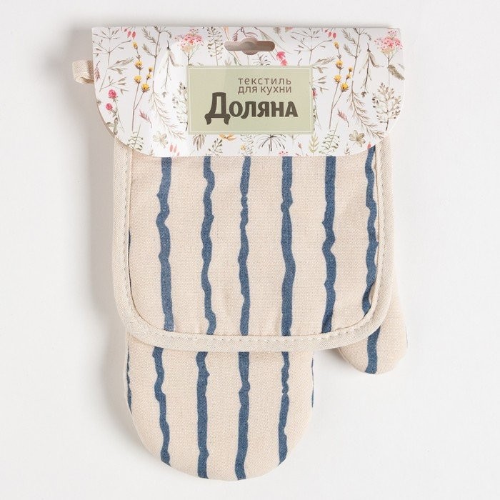 Кухонный набор (2 предмета) Доляна «Линии», прихватка 17×17 см, варежка 26×16 см, 100% п/э