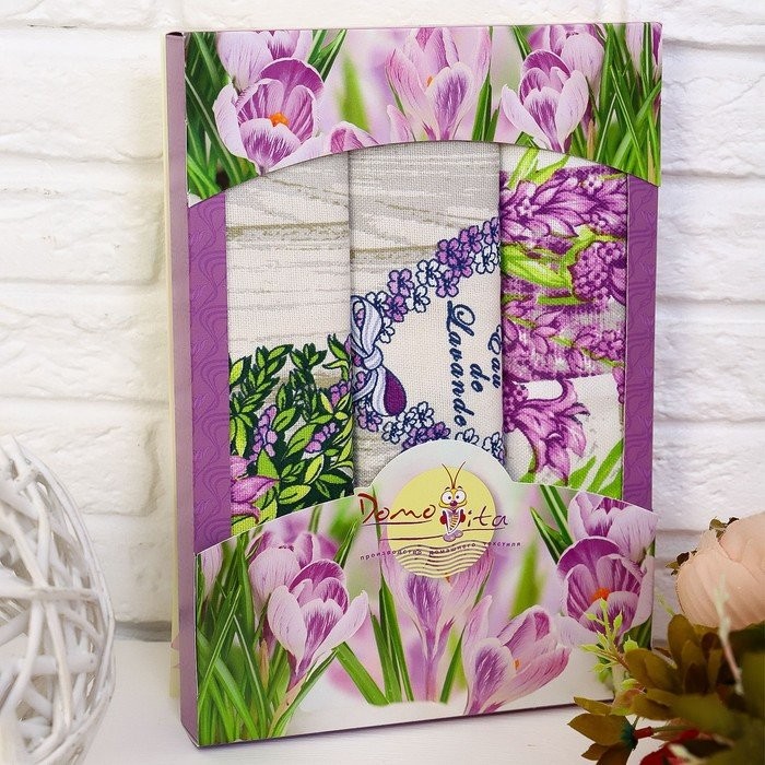 Набор полотенец в коробке Лаванда 45×60 см, 3 шт, рогожка 160 гр/м2, хлопок 100%