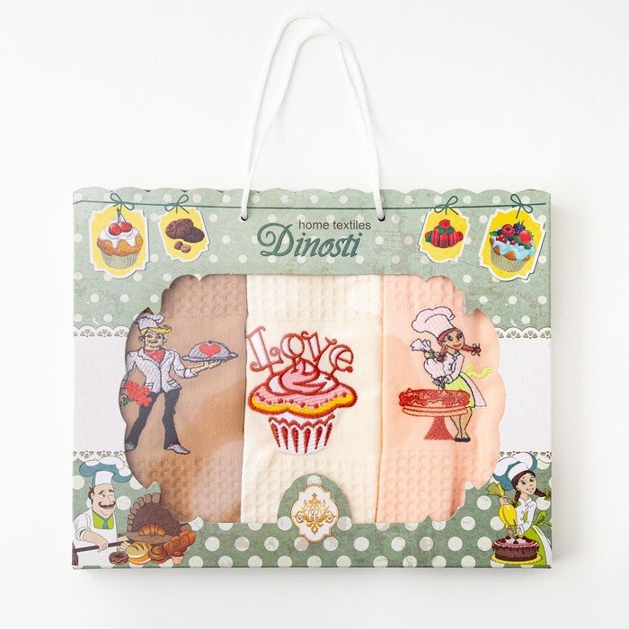 Набор кухонных полотенец в коробке 33*60 см-3 шт, Любовные истории, вафля, хл