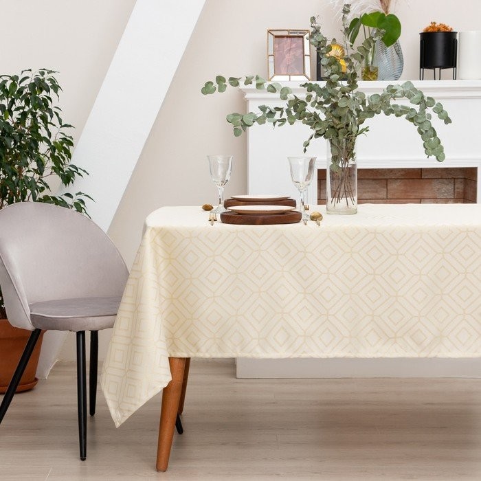 Скатерть Этель «Ромбы» цв.бежевый, 142*180 +/-3 см, 115 ±10 гр,100% п/э