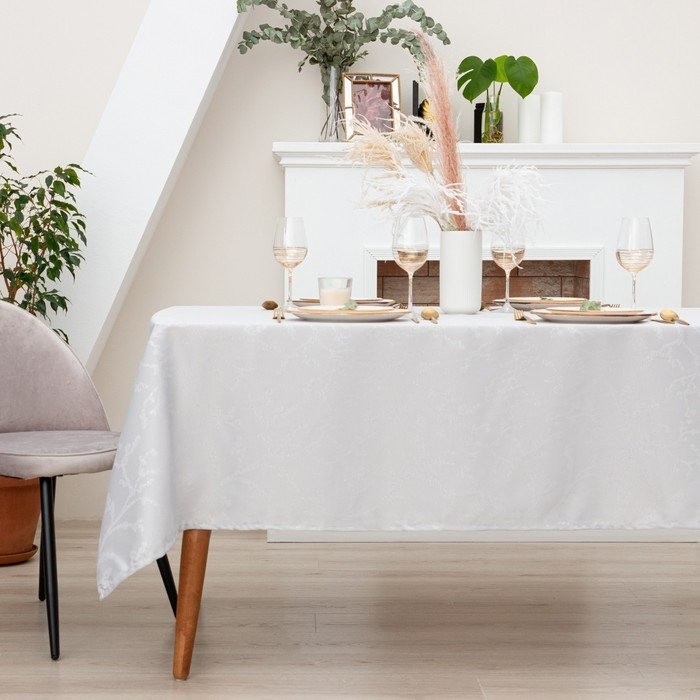 Скатерть Этель «Ветвь» цв.серебро, 142*283 +/-3 см, 115 ±10 гр,100% п/э