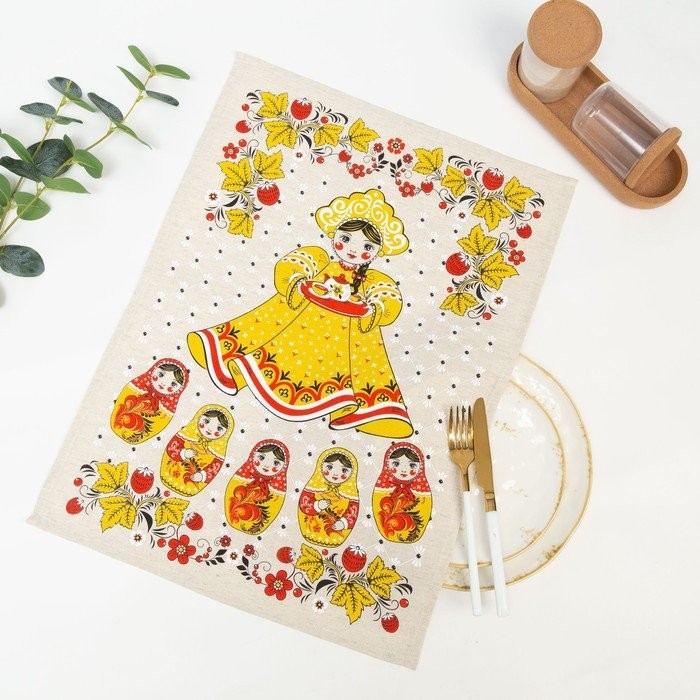 Полотенце кухонное Девица красавица-хохлома 45×60 см, полулён, 160 г/м2