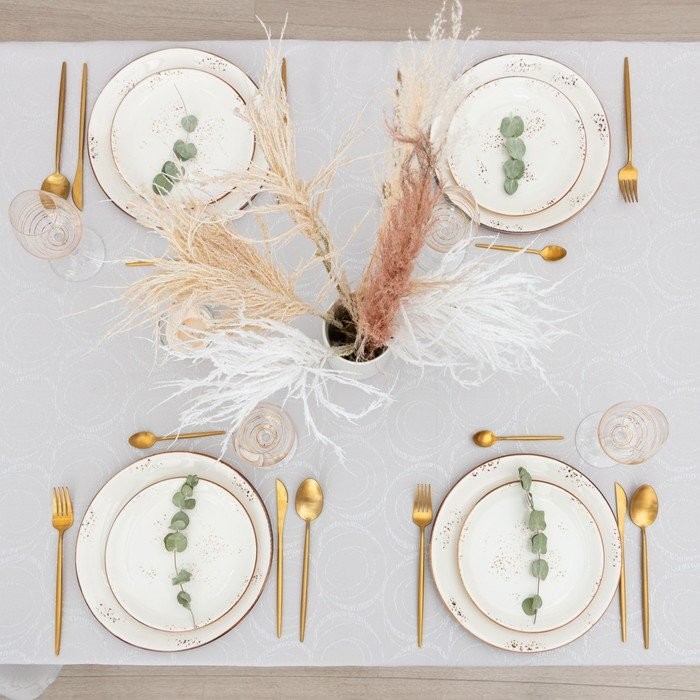 Скатерть Этель «Круги» цв.серебро, 142*110 +/-3 см, 115 ±10 гр,100% п/э