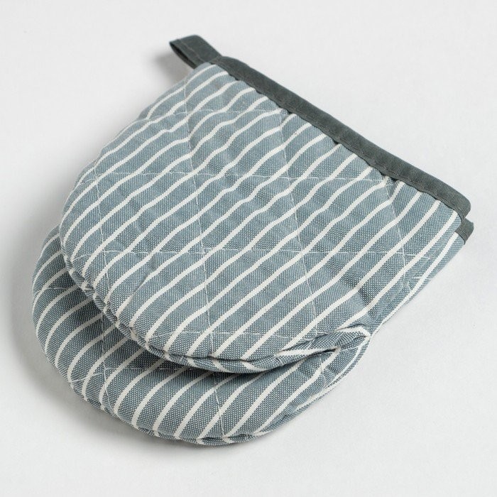 Кухонныйнабор Доляна «Полосы», прихватка20х20см, варежка12х15см, серый, 50%п/э, 50%хл