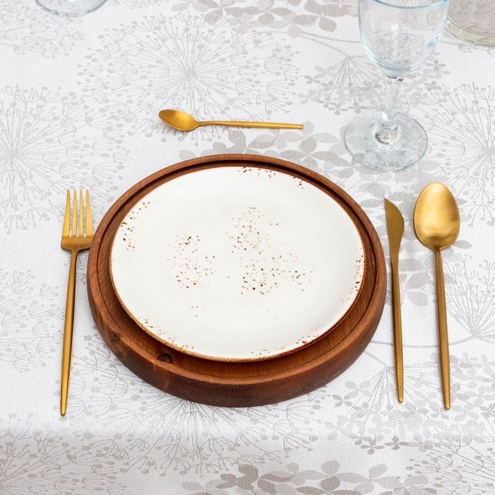 Скатерть Этель «Flowers» цв.серебро, 142*180 +/-3 см, 115 ±10 гр,100% п/э