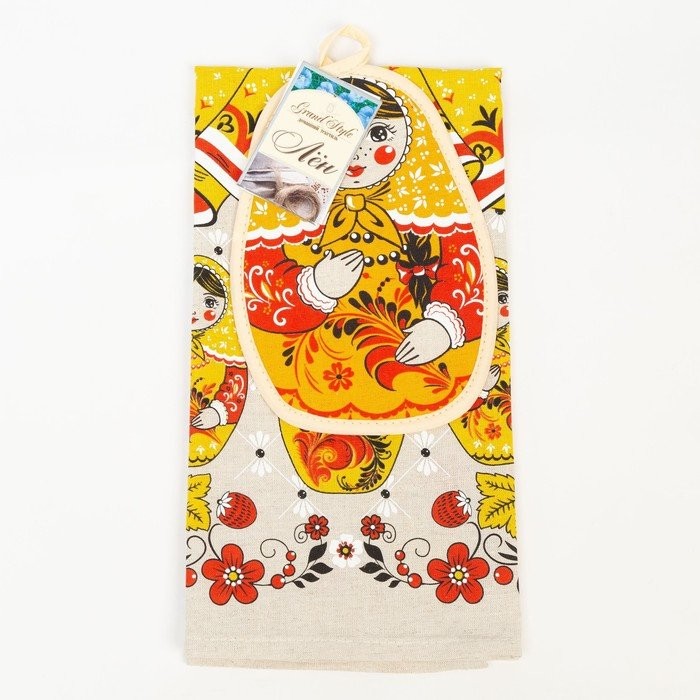 Набор кухонный Девица красавица-хохлома полотенце 45×60 см, прихватка 19×16 см, полулен,