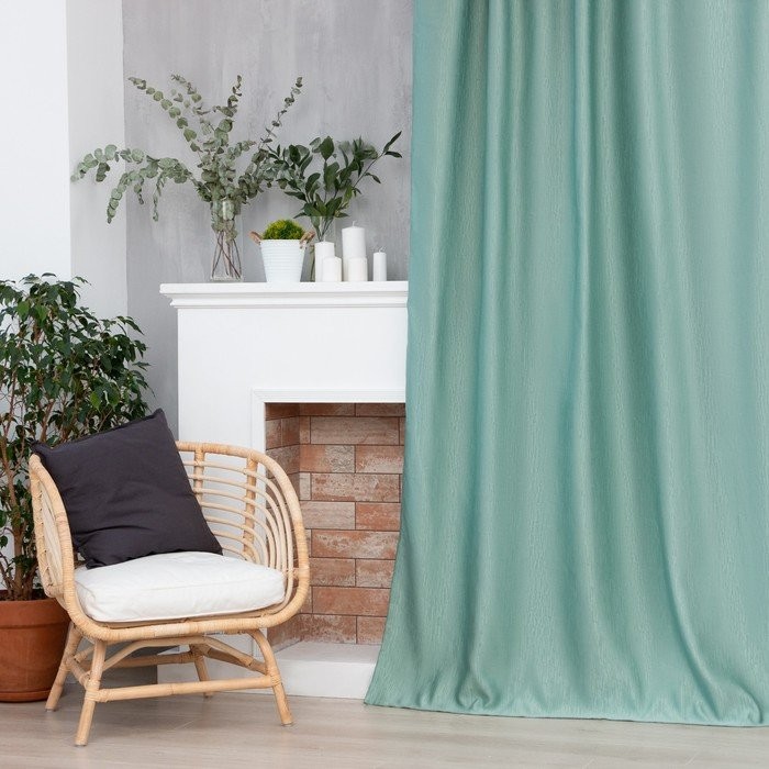 Штора портьерная Этель «Фактура"цв.светло-зеленый,на шторн.ленте 145*265 см,100% п/э
