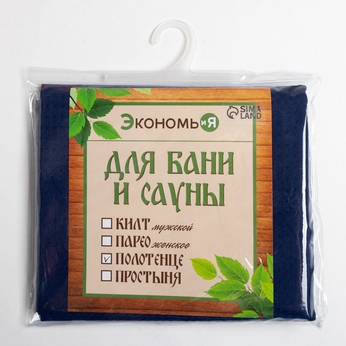 Полотенце для бани Экономь и Я 80×150 см, 100% хлопок, ваф. полотно, т.синий, 200 гр/м2