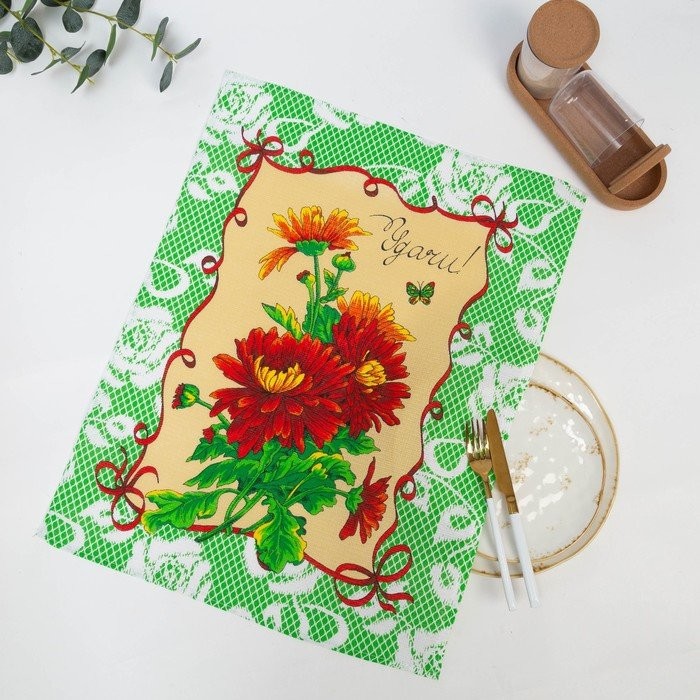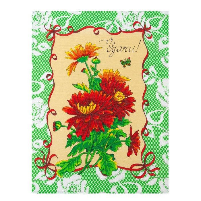 Полотенце в коробке 45×60 см, Удачи, салатовый, вафля, 160 гр/м2, хлопок 100%