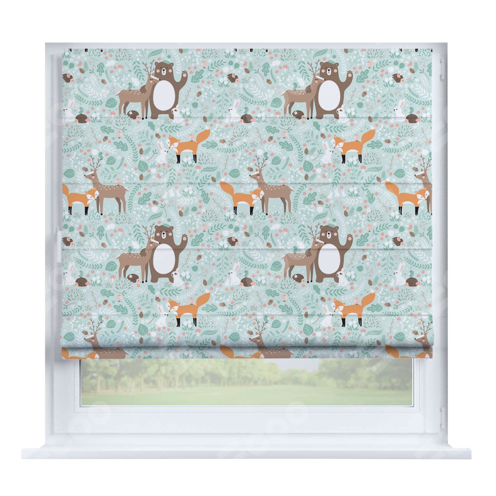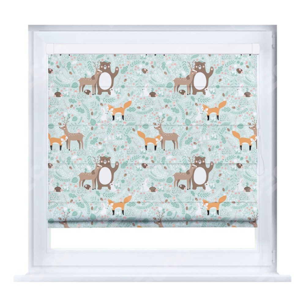 Римская штора производителя «Cortin», устанавливается на створку окна, пошита из ткани блэкаут с нанесением сублимационной печати «Лесные друзья». Штора шьётся по индивидуальным размерам, для данного типа римской шторы возможная ширина от 35 до 150 см., высота до 250 см.