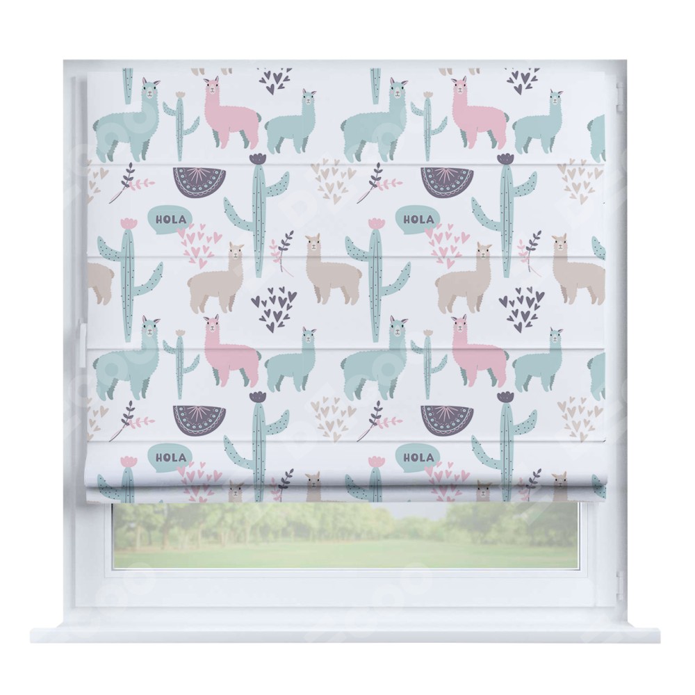 Римская штора производителя «Cortin», устанавливается на створку окна, пошита из ткани блэкаут с нанесением сублимационной печати «Милый лама». Штора шьётся по индивидуальным размерам, для данного типа римской шторы возможная ширина от 35 до 150 см., высота до 250 см.