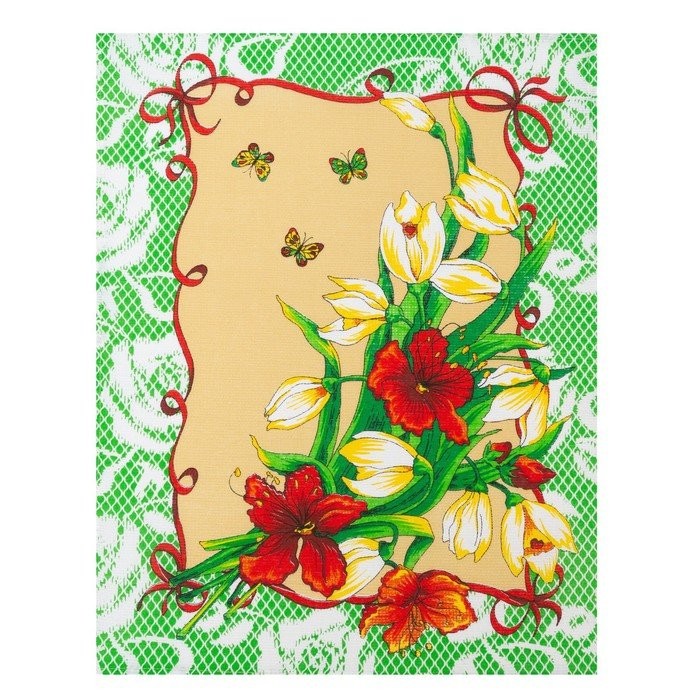 Полотенце в коробке 45×60 см, Цветы, салатовый, вафля, 160 гр/м2, хлопок 100%