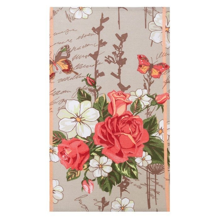 Полотенце 35×60 см, Красные и белые пятна, песочный, вафля, 160 гр/м2, хлопок 100%