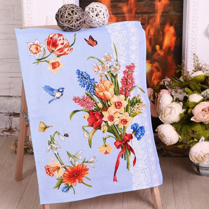 Полотенце 45×60 см, Цветы для любимых (рис.2), вафля, 170 гр/м2, хлопок 100%
