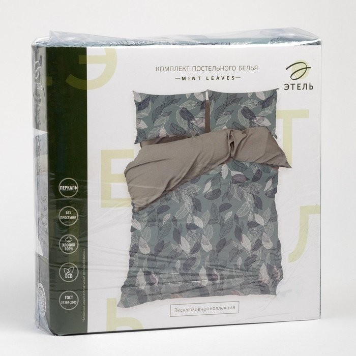 Постельное бельё Этель 2 сп Mint leaves, пододеяльник 175×215 см, наволочки 50×70 см 2 шт, 100% хлопок