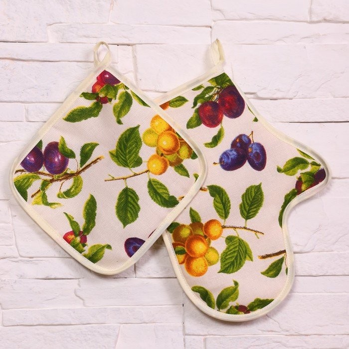 Набор кухонный Варежка 26*30 см+прихватка 18*18 см) Слива, рогожка, хл 100%