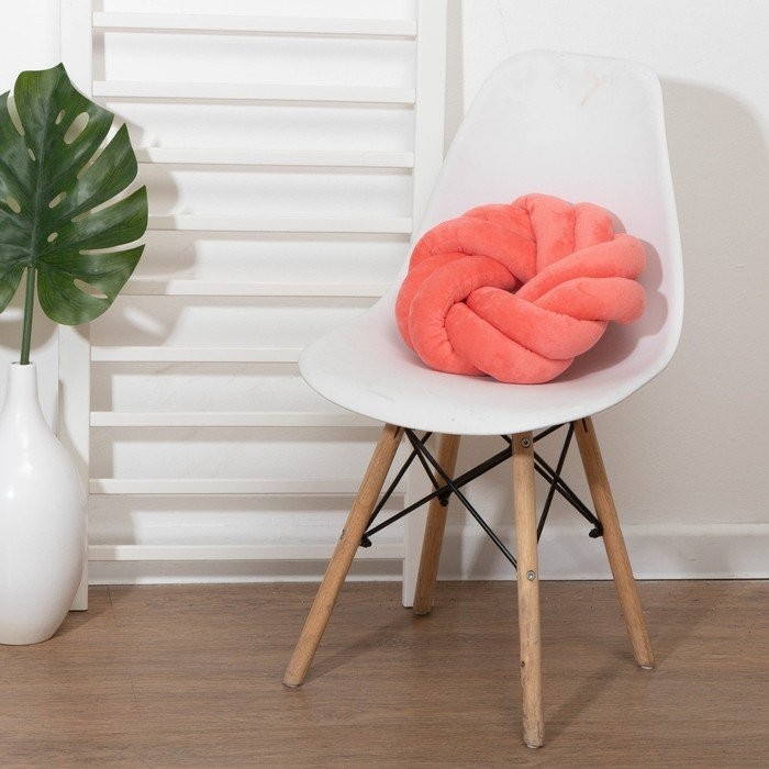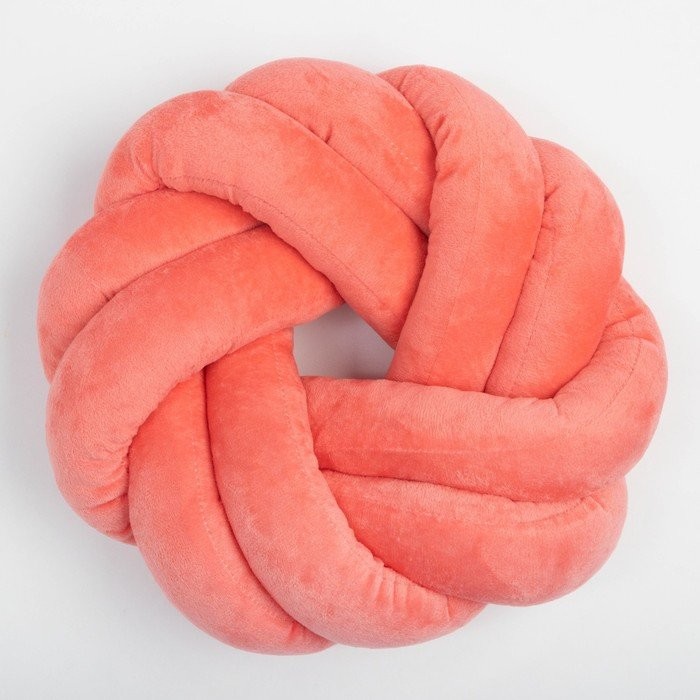 Подушка-узел декоративная Этель, d=33см, цв. коралловый, велюр