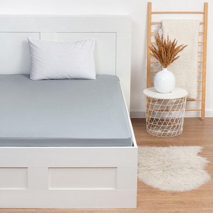 Простыня на резинке Этель 160*200*25 см, цв. серый, 100% хлопок, бязь, 125 г/м²