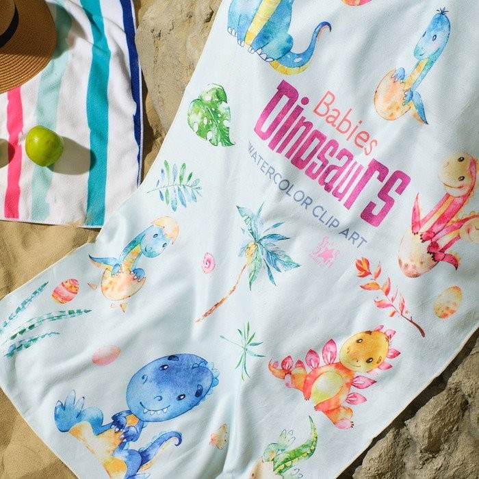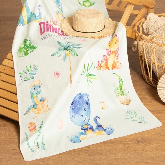 Полотенце пляжное Этель «Динозаврики» 75*140 см, микрофибра, 100% п/э, 230 гр/м2
