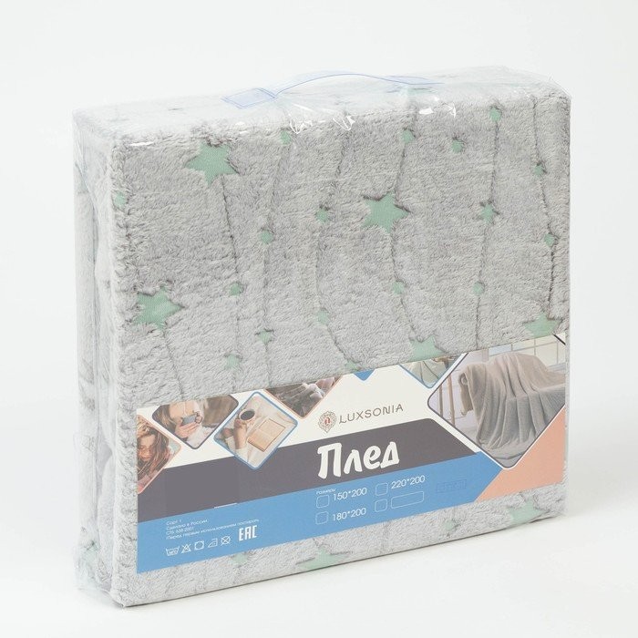Плед светящийся 150×200 см «Звёзды», велсофт 260г/м