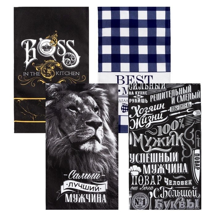 Набор кухонных полотенец Доляна Mens 35х60см-4шт, 100% хл